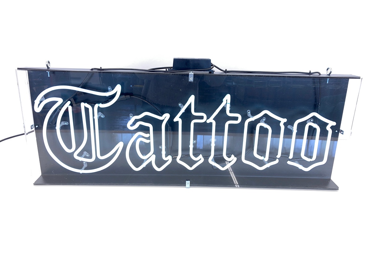 This glowing blue “Tattoo” neon sign delivers a punch of attitude for tattoo parlors, street level storefronts, or grungy walk and talk nigh...