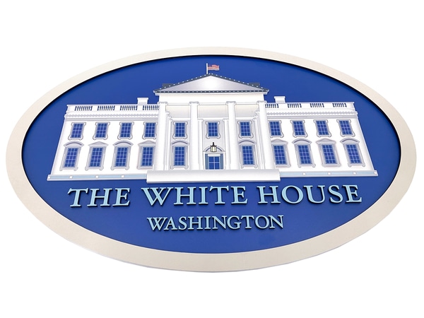 This replica of the interior plaque from our White House Press Briefing Room set features the iconic White House illustration and bold lette...